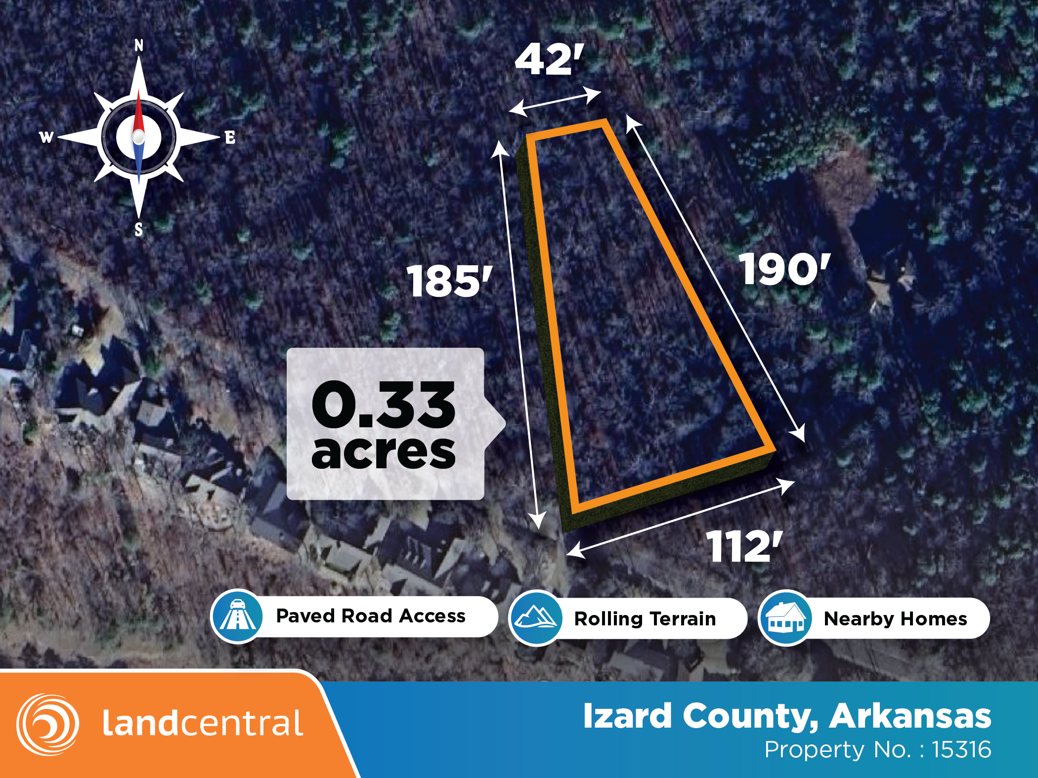 | Dimensions | 42'x 185'x 112'x 190' |