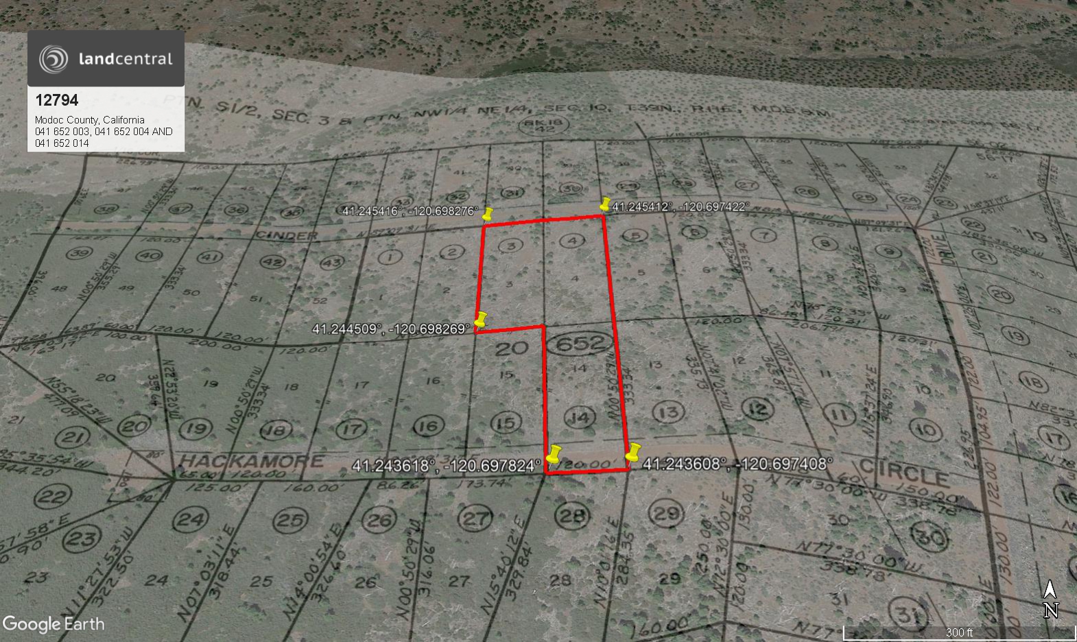 Lots 3 and 4 and 14 in Block 20 of California Pines Unit No.5, a subdivision of the County of Modoc according to the Official Plat thereof, filed in Book 2 of Maps in Modoc County Records.