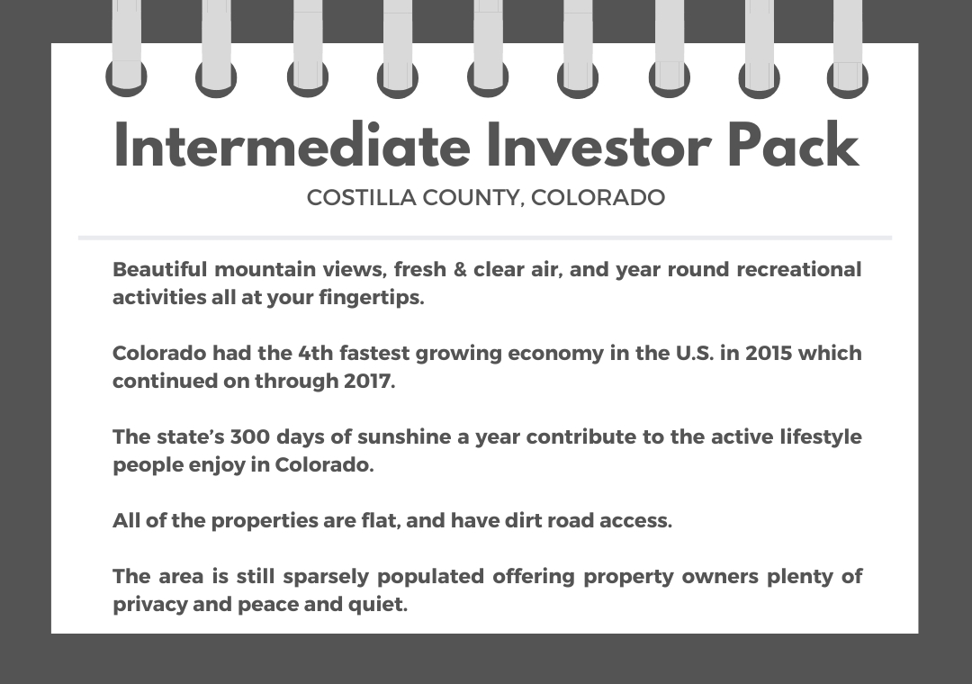 Month after month Colorado continues to be one of the most popular states for purchasing vacant land. Colorado has so much to offer and appeals to every type of land buyer. Fresh air, an abundance of outdoor activities, a growing economy and friendly people are just a few of the things that make this state so appealing. These five parcels are just outside of the town of Blanca in the southernmost portion of the state. Colorado Springs is about a two and a half hour drive away. Do not miss your chance to invest in this great state at such a fantastic value!