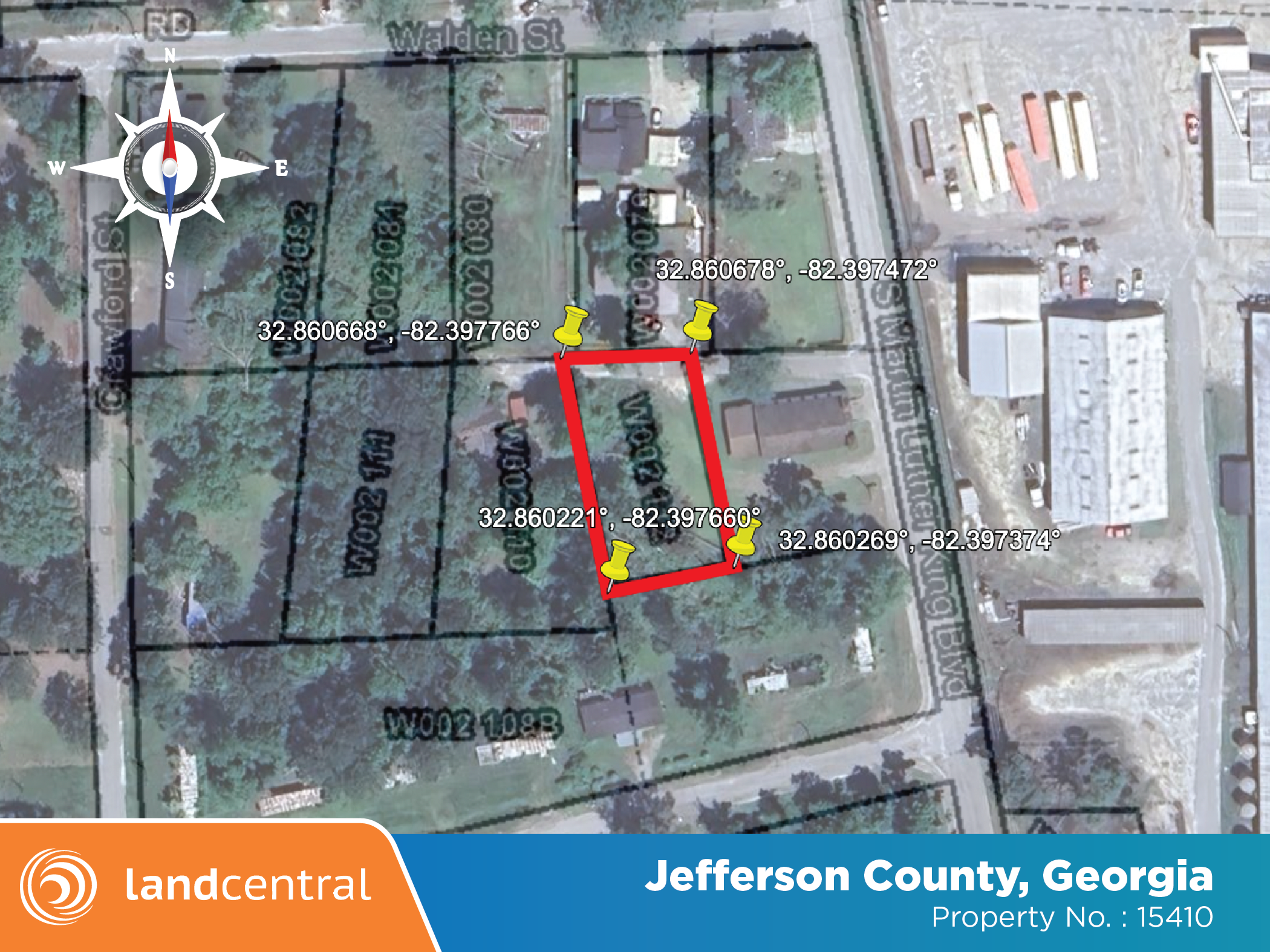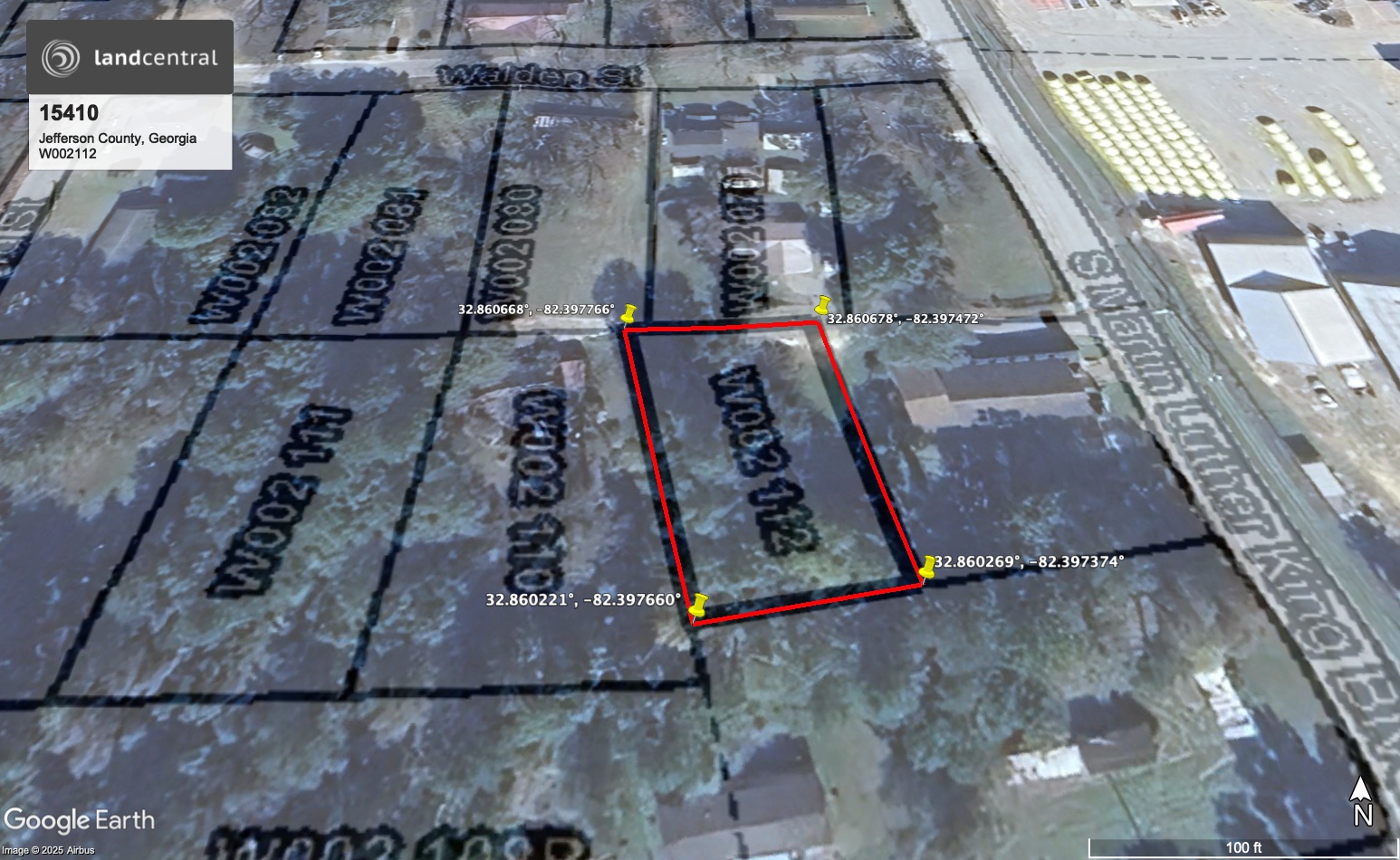 All that parcel or lot of land lying in the City of Wadley, 83rd District G.M. Jefferson County, Georgia, and being bound as follows: on the North by the public street for a distance of 51 feet, on the South by Land of Hoke S. Williams a distance of 51 feet; on the east by land of the Peaceful Zion Baptist Church for a distance of 189 feet, and on the West by land of Charlie Williams a distance of 189 feet . This is the same tract of land conveyed to me from the Trustees of the Peaceful Zion Baptist Church by warranty deed dated July 7, 1969 and recorded in office of the Clerk, Superior Court, Jefferson County, Georgia, in Deed Book 3-Z, Page 115. As described in Deed Book 72, Page 323. Further described as Map & Parcel W002112. |